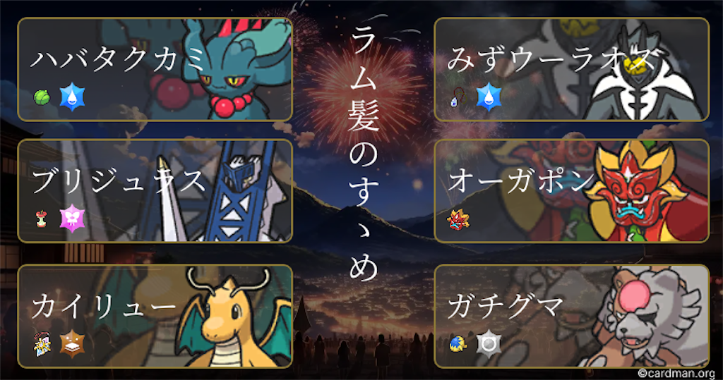 エース2。2/29に入ってきたが想像の3倍活躍してくれた。相手にサーフゴーがいる時にウーラオスブリジュラスと投げるとブリに一生サーフゴーをあと投げされるだけで終わるため採用したが、ヘイラッシャ絡みやドビドディンルーなどハバタクカミと合わせて受けに対して圧倒的に強くこいつのおかげで最終日溶かさずレートを盛れた。